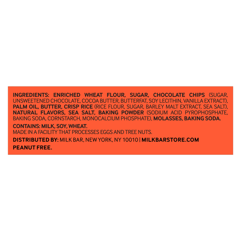 The Milk Bar decadence you love in a new and delicious bite-sized crunch. These Crunchies are full of rich brown butter flavor and sweet chocolate chips, baked to be perfectly snackable with pops of surprise crispy rice cereal for a satisfying crunch, anytime of day. You've never met a cookie like 'em.