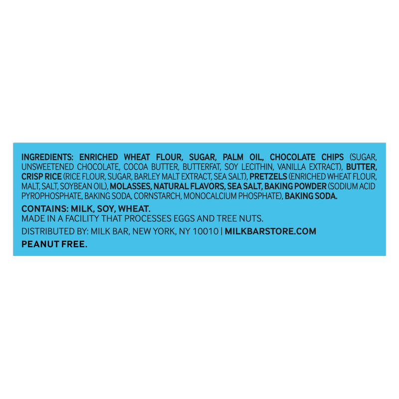The Milk Bar decadence you love in the perfect bite-sized crunch. These Crunchies are full of savory pretzels and sweet chocolate chips, baked to be perfectly snackable with pops of surprise crispy rice cereal for a satisfying crunch, anytime of day. You've never met a cookie like 'em.