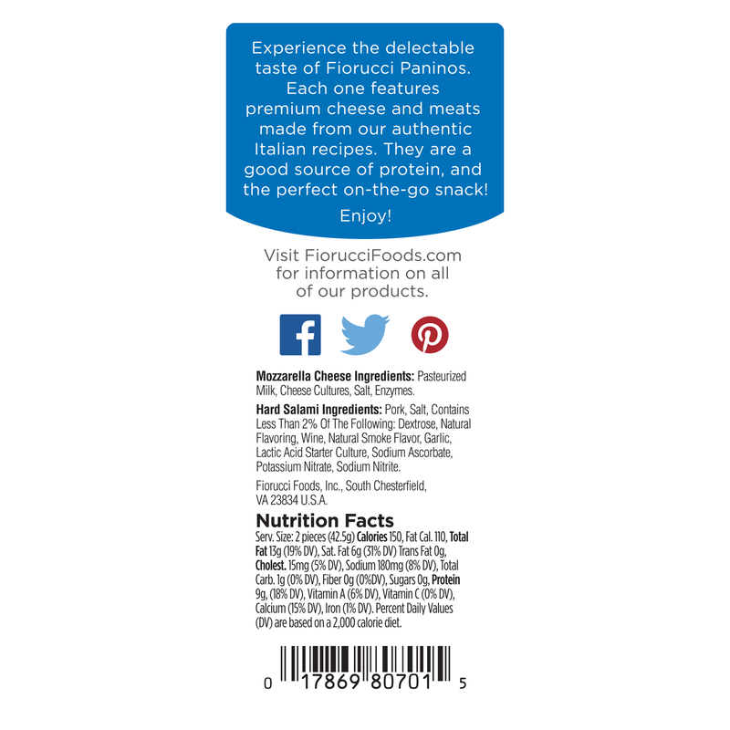 Fiorucci Panino Hard Salami and Mozzarella Snack Pack - 2ct/1.5oz