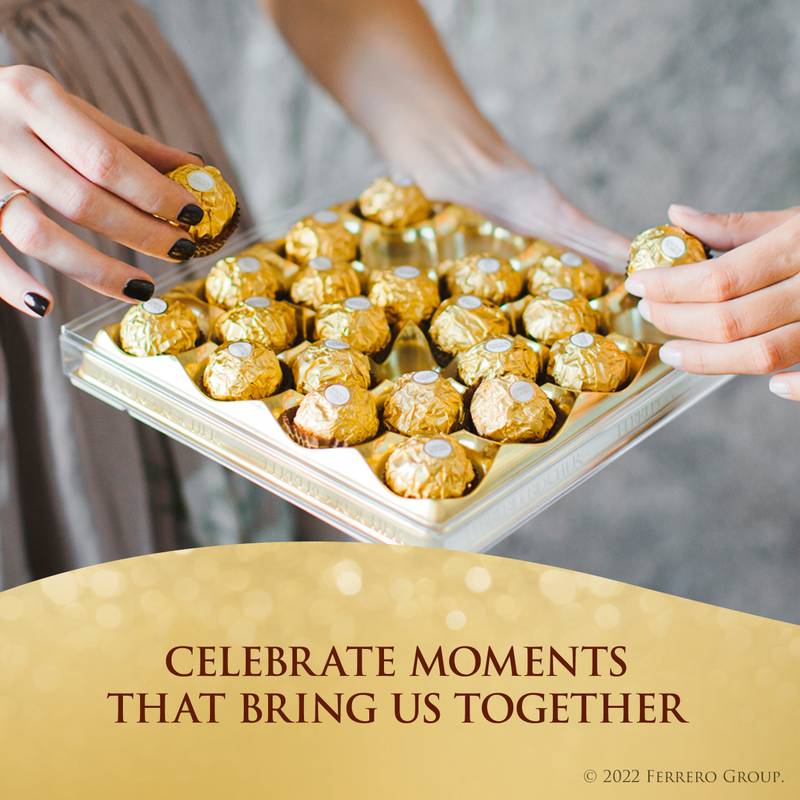 Ferrero Rocher's milk chocolate gift box offers a unique taste experience of contrasting layers: a whole crunchy hazelnut in the heart and a delicious, creamy hazelnut filling surrounded with milk chocolate, crispy wafers and gently roasted hazelnut pieces. And thanks to its signature golden wrapper, Ferrero Rocher is even more unique and special. The iconic original. Celebrate the moment with Ferrero Rocher. Since the 1940s, Ferrero has delighted consumers with premium, one-of-a-kind chocolate treats. What began as a local pasticceria in Italy’s Piemonte region is now one of the world’s most popular confectioners, satisfying cravings in over 100 countries worldwide. Thanks to a commitment to quality, freshness and a unique taste experience, Ferrero continues to delight chocolate lovers all over the world.