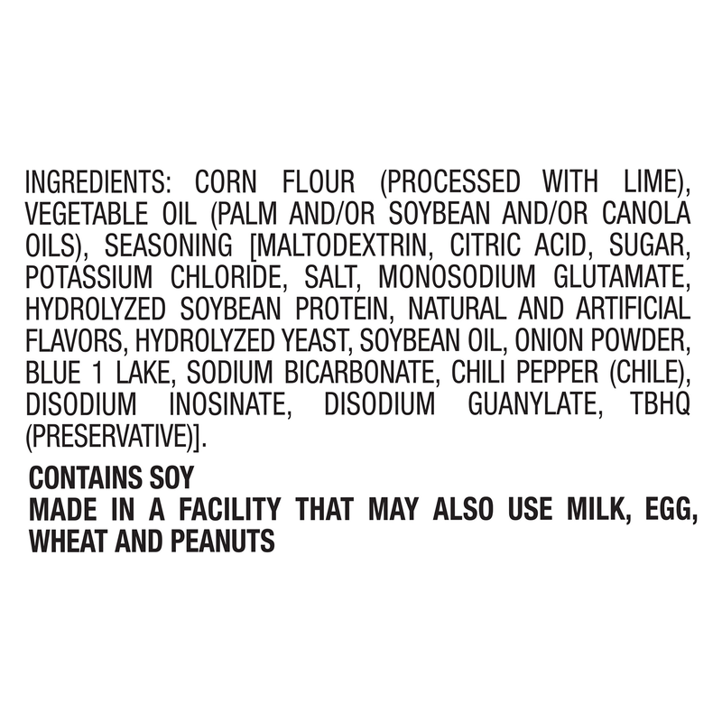 Turn the heat up and make snack time a thrilling experience with the Takis Blue Heat Rolled Tortilla Chips. Give your taste buds the gift of launching into an unexplored universe of sensational flavor combinations with an unbeatable crunch in every single bite. Pack a bag to give yourself a tasty pick-me-up at school, be ready to conquer hunger while spending the day hanging with your friends, or grab a handful for when you just need a boost of flavor while hunting for new adventures. These Hot Chili Pepper artificially flavored rolled corn tortilla chips make a great snack to share with your squad and transform a low-key hangout or a fun road trip.