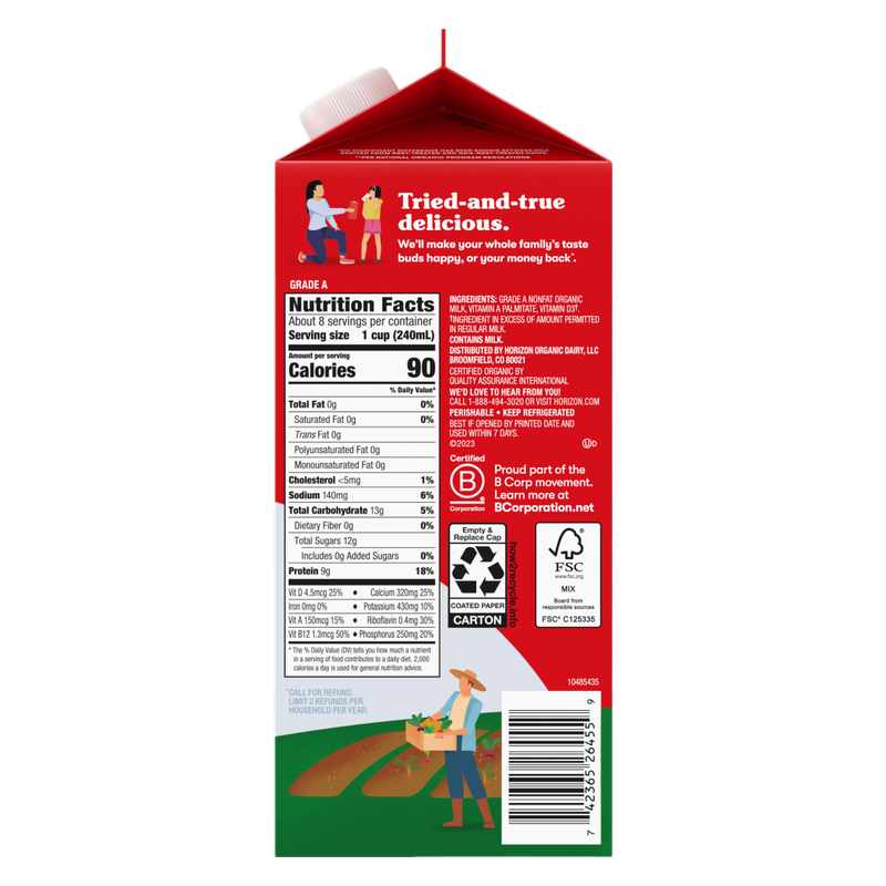 Horizon Organic Fat-Free Milk - 1/2 Gallon