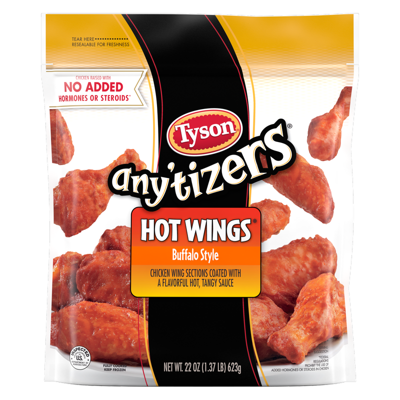 Tyson Any’tizers Bone In Buffalo Chicken Hot Wings are covered in a spicy, tangy Buffalo sauce. Simply heat buffalo chicken wings in an oven or microwave and serve with your favorite dipping sauce for a flavorful appetizer. Keep it real. Keep it Tyson.