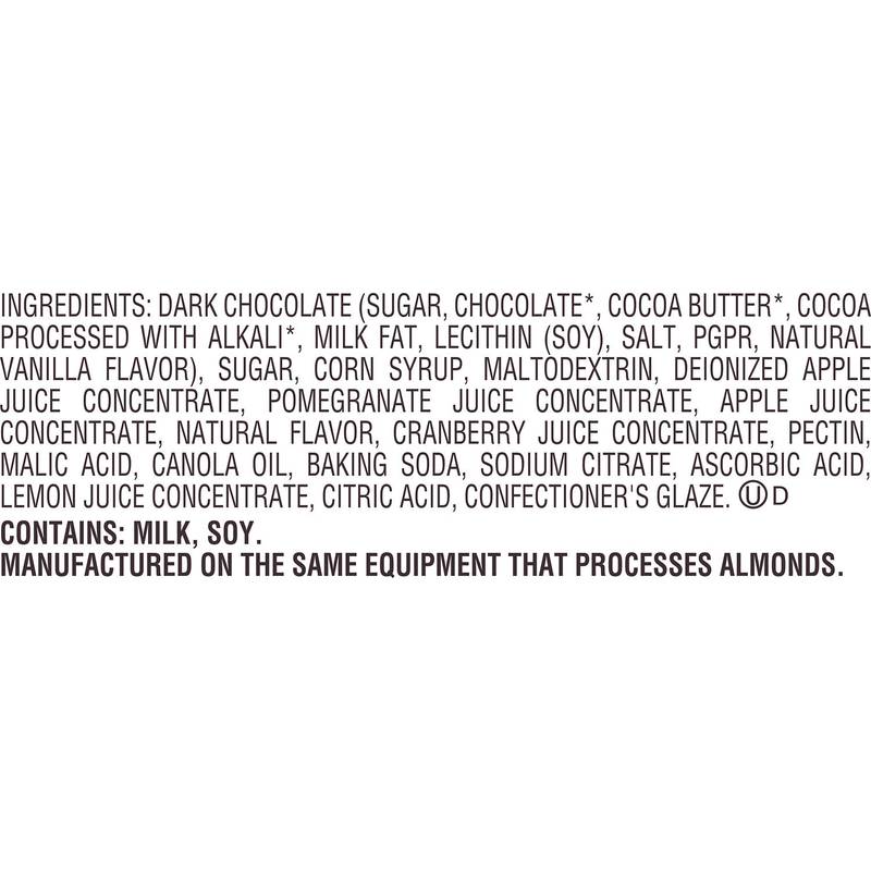 Experience the daring and unique combination of BROOKSIDE dark chocolate with pomegranate fruit flavored centers snacking chocolate. These smooth, dark chocolate morsels are filled with luxurious, fruity pomegranate flavored centers made with no artificial colors or flavors. Each little sphere has soft, chewy fruit flavors and smooth, rich dark chocolate. The result is a dark chocolate snack that is great if you need a sweet treat for a show stopping addition to homemade trail mix. These chocolates are also perfect for snack breaks when you're in the mood for something sweet. When a sharing moment strikes, or you are looking to give a dark chocolate gift, offer dark chocolate and pomegranate flavored treats to please your whole family or work team. The artfully blended exotic fruit flavors in these BROOKSIDE chocolate treats come from around the world and offer the ultimate mix for anybody seeking a unique experience. Keep a bag of flavorful BROOKSIDE snacks with you wherever the day leads to make sure you can always keep your taste buds happy with delicious, quality chocolate. Don't forget to share BROOKSIDE dark chocolate during the holidays. Fill Valentine's Day gift bags, Easter baskets, Halloween candy bowls and Christmas stockings with delicious snacking chocolate.