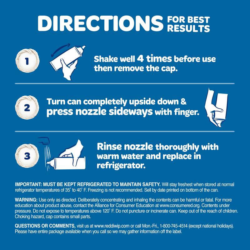 Serve up a delicious, rich cream taste with Reddi-wip Extra Creamy Whipped Topping for a versatile dessert topping. The extra creamy version of this dairy whipped topping offers the creamy texture and sweet flavor you know and love. Made with real cream as the first ingredient, this whipped topping has 15 calories per serving, is gluten free and is made without hydrogenated oils, which are commonly found in other whipped topping products. Reddi-wip adds delicious flavor and excitement to countless desserts such as strawberry shortcake, pies, sundaes, milkshakes and brownies. Use for classic ice cream toppings with sprinkles. Not only is this whipped topping great for tasty desserts, but you can add some extra joy to fruit, hot cocoa and coffee, or use on pancakes and waffles for a fun kids breakfast. It also makes a delicious base for whipped frosting. Forget all the hassle of whipped cream, this spray couldn’t be easier to use. Simply shake the can, flip it over and push the nozzle down. Store Reddi-wip in the refrigerator. Whether you’re celebrating holidays with the family, enjoying breakfast or dessert after dinner, Reddi-wip Extra Creamy Whipped Topping brings something special. Reddi-wip can transform any moment.