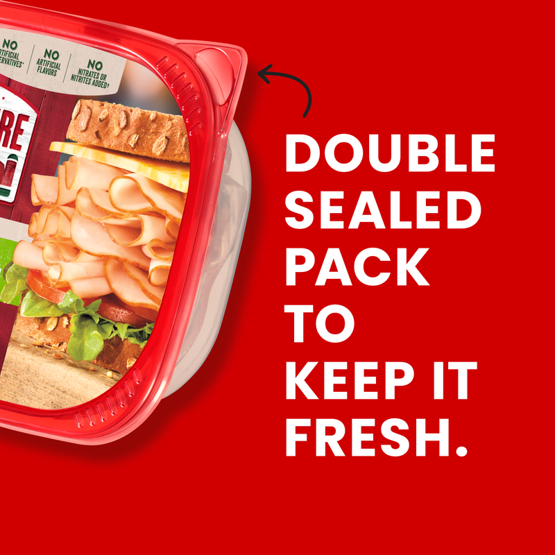Can a sandwich crafted with delectably roasted cuts make your tastebuds quake with yearning? For Sure, It's Hillshire! Bring the goodness of the farm to your table and experience the taste of a homestyle meal on a sandwich with Hillshire Farm Ultra Thin Sliced Oven Roasted Turkey Breast Sandwich Meat. Our slow-cooked, oven-roasted, thin sliced turkey lunch meat is carefully crafted with the highest quality ingredients. Our farmhouse quality turkey breast is slow roasted for hours and made with no artificial preservatives or flavors, and no nitrates or nitrites added (except for those naturally occurring in the celery juice powder and sea salt). Try our gluten-free sliced turkey in a sandwich or wrap, on a salad or as part of a charcuterie board. Each 9-ounce package of Hillshire Farm Oven Roasted Turkey Breast is double sealed for freshness and flavor.