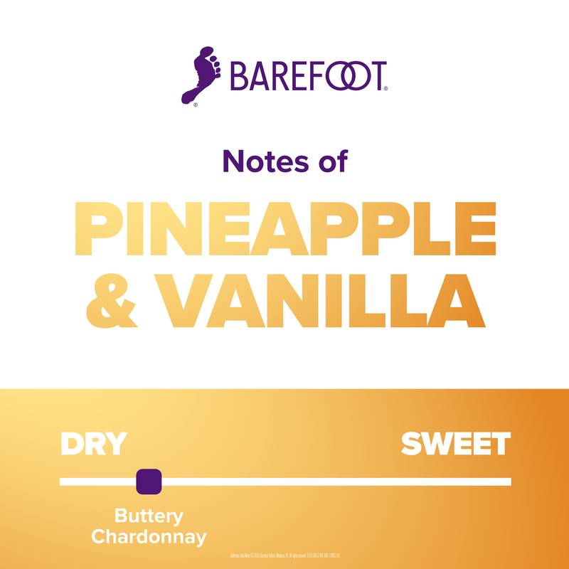 Barefoot Chardonnay White Wine features tempting notes of fresh green apple and sweet peach with hints of honey and vanilla in a large 1.5 L bottle. With a smooth and crisp finish, this medium bodied California wine comes in a larger 1.5 L wine bottle that contains two 750 mL bottles of wine, making it perfect for entertaining at an outdoor party or enjoying with a group of friends. This Chardonnay wine comes from Barefoot, the most awarded wine brand in US competitions. Let's get Barefoot.