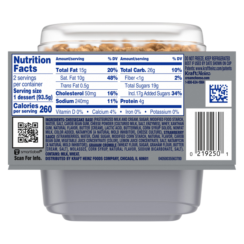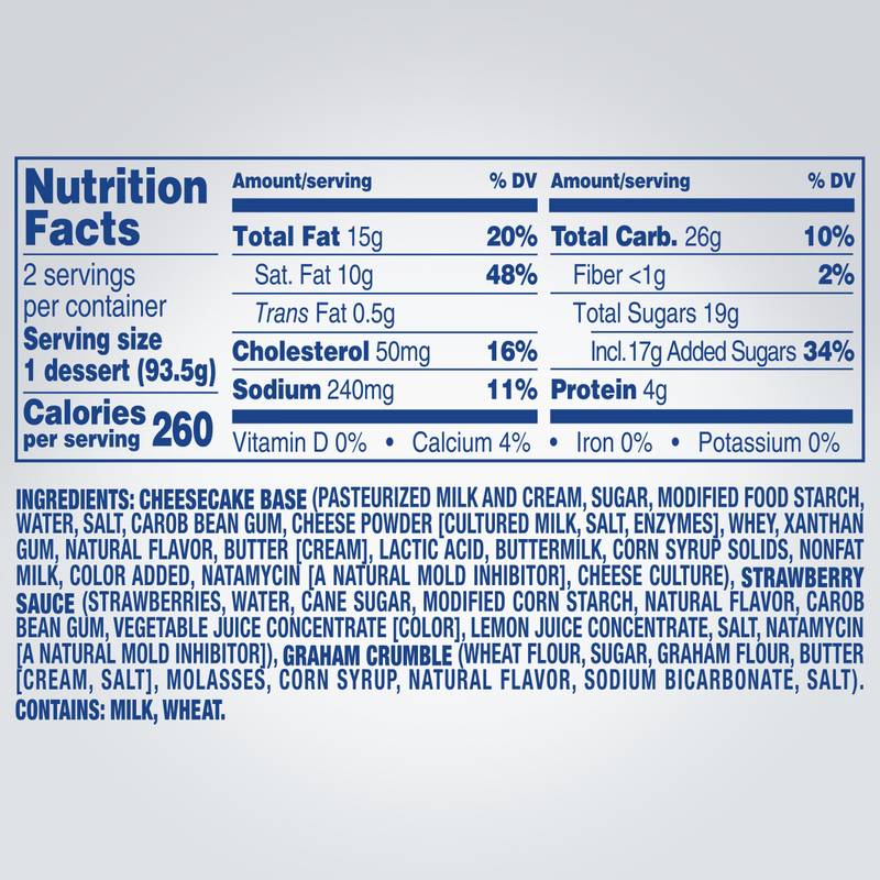 PHILADELPHIA Cheesecake Crumble Strawberry Desserts is a personal serving of creamy PHILADELPHIA Cheesecake base with graham crumbles and strawberry sauce. Each dessert is made with no artificial preservatives, flavors, or dyes. Just open the convenient Philadelphia Cheesecake Crumble cups, pour the graham crumbles on top, mix and dig into a delicious indulgent dessert. It's the perfect easy dessert for one that can be enjoyed anytime, anywhere. Each package comes with two strawberry dessert cups that are just too good to be shared.