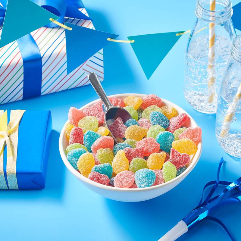 Soft and chewy gummy candies bursting with sour, fruity flavors perfect for snack time at home, at work, at school and on the road.
