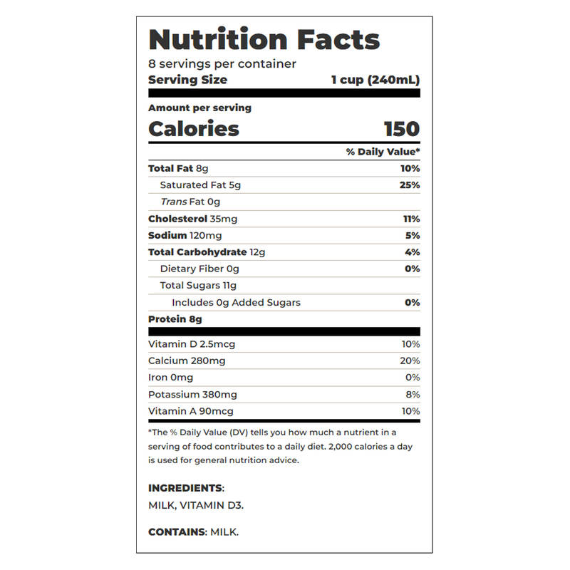 PET Dairy Whole Milk is a dairy milk that offers a delicious way to bring more nutrients into your routine. At 150 calories and 8 grams of protein per serving, this creamy milk with vitamin D provides 20% of the recommended daily value for calcium, complementing your diet while offering the taste you know and love.