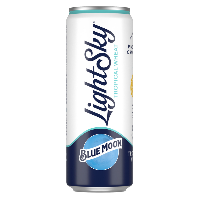 Refreshing and light, Blue Moon LightSky Tropical Wheat beer is crisp and flavorful with a unique tropical twist. This delicious low carb beer is brewed with real orange peel and features candied pineapple flavors—giving it a full flavorful profile that you wouldn’t expect from a light beer. Plus, it has just 95 calories and 3.4g carbs per 12oz can—a perfect pairing with a summer salad.Refreshing and light, Blue Moon LightSky Tropical Wheat beer is crisp and flavorful with a unique tropical twist. This delicious low carb beer is brewed with real orange peel and features candied pineapple flavors—giving it a full flavorful profile that you wouldn’t expect from a light beer. Plus, it has just 95 calories and 3.4g carbs per 12oz can—a perfect pairing with a summer salad.