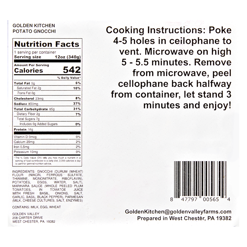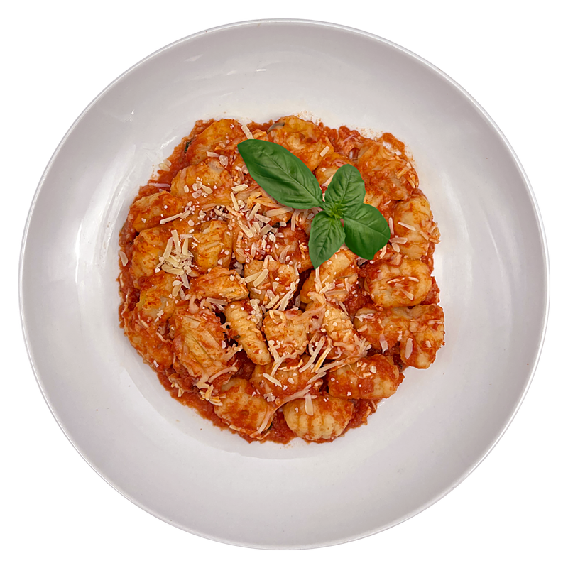 Freshly Preppared Potato Gnocchi with freshly made marinara sauce. All natural ingredients. Preservative free!