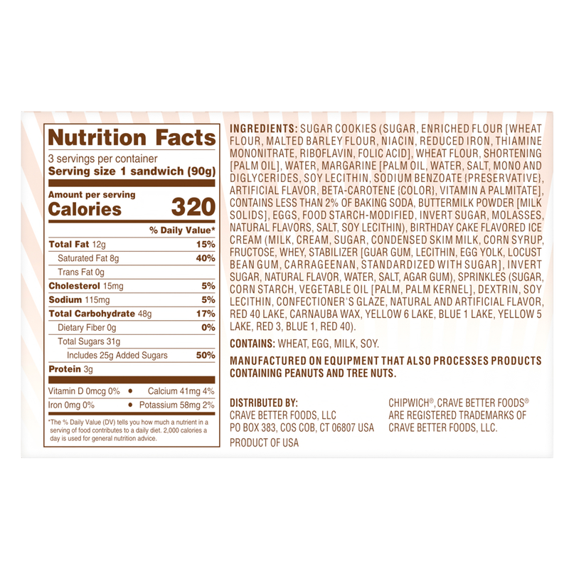 Chipwich Birthday Cake Ice Cream Sandwich 3ct