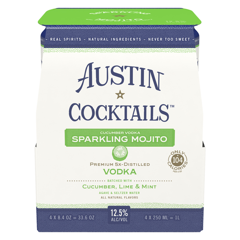 Austin Cocktails Cucumber Vodka Sparkling Mojito Canned Cocktail is a premium, gluten-free mixed drink offering crisp, zesty cucumber, lime, and mint flavors in convenient ready to drink cocktails.