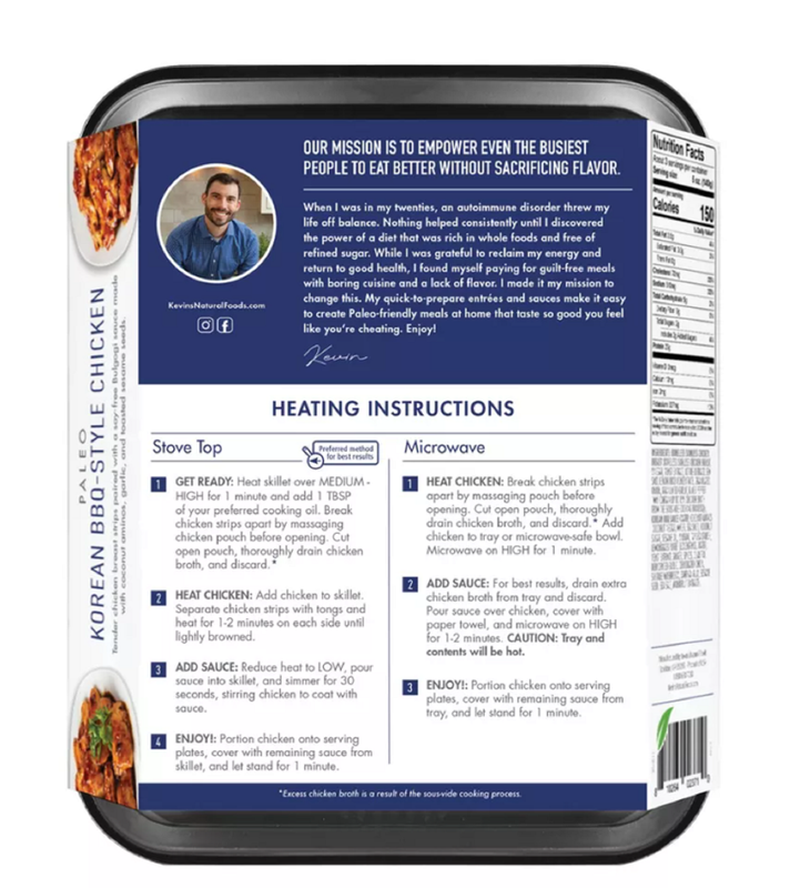 Eat clean without sacrificing flavor! Taste the unforgettable gourmet flavor of Kevin's Korean BBQ-Style Chicken. A Paleo/Keto-Certified soy-free Bulgogi sauce made with coconut aminos, garlic, and toasted sesame seeds, paired with fork-tender chicken breast that's cooked to perfection using a celebrated French cooking technique called “sous-vide”. Easy to prepare in just 5 minutes, these entrées are a delicious, low-mess, guilt-free solution for a busy day.