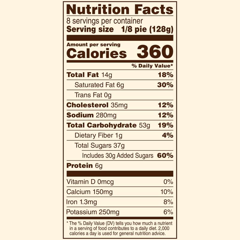 Blended with the traditional flavors of cinnamon, sugar, and a hint of nutmeg, each slice is brimming with delicious pumpkin filling. Flaky made-from-scratch crust makes each bite satisfying. Bake this pie in the oven and serve warm. Serve with ice cream or whipped cream for an extra-special treat that tastes homemade.