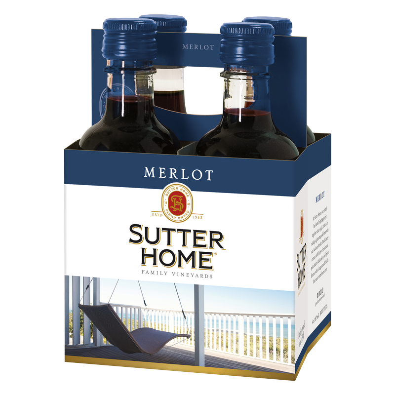 Sutter Home Merlot Red Wine is a full-bodied, silky-smooth red wine with delicious fruit characteristics, soft tannins and a rounded mouthfeel. Ripe black cherry aromas with hints of tobacco and herbal spice lead to smoky black cherry and spiced plum flavors on the palate. Sutter Home Merlot wine has earned 90 points - Gold from 2023 Toast of the Coast Wine Competition and Triple Gold-Best of Class from 2022 Dan Berger's International Wine Competition. This dry red wine pairs well with herb-roasted chicken, spaghetti Bolognese and mushroom risotto. The wine making process starts with grapes from premier vineyards in cool coastal regions and warmer inland regions of California. This dry wine is fermented in stainless steel tanks at cool temperatures to preserve its vivid cherry flavors and aromas. This four pack of mini bottled wine has 13.4% alcohol by volume and comes with screw caps for easy opening. Sutter Home, family owned since 1948, is the brand generations of wine lovers trust to deliver consistent, award-winning quality and value for every wine occasion.