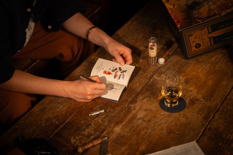 Includes: 24 x 50ml top-shelf whiskey samples, collectible Glencairn glass, exclusive leather coaster, and tasting journal with printed information about the whiskeys.