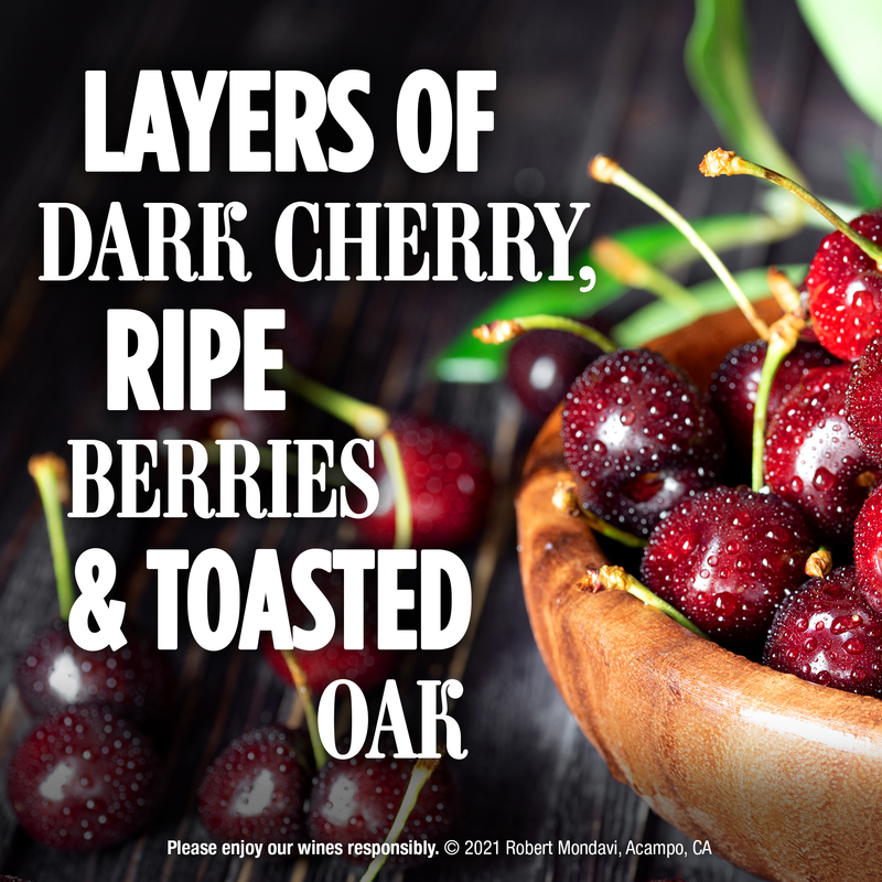 Robert Mondavi Private Selection Bourbon Barrel Aged Cabernet Sauvignon Red Wine has concentrated aromas and flavors of ripe dark cherry, blackberry, cocoa, smoke, and sweet spices.