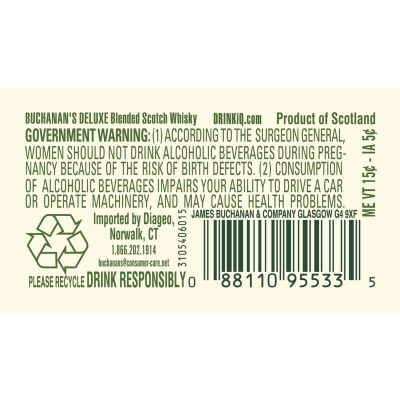 Born from over a century of experience, Buchanan's DeLuxe Aged 12 Years Blended Scotch Whisky is guaranteed to heighten any celebration. With notes of citrus fruits and honey, our 80 proof whisky features a sweet, smooth flavor with orange and chocolate notes. Matured for 12 years, our DeLuxe blend offers a lighter profile compared to denser whiskies. Our luxury whisky is crafted to the highest quality for a vibrant character. Buchanan's is proud to shine a light on the spirit of the 200%: those who proudly embrace both their 100% Hispanic heritage and 100% American culture all at once. Best enjoyed in a buchanita. Includes one 80 proof 375 mL bottle of DeLuxe Aged 12 Years Blended Scotch Whisky. Please drink responsibly.