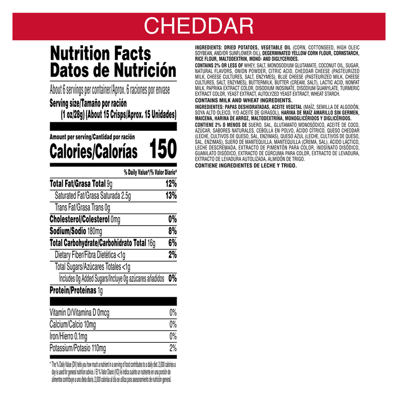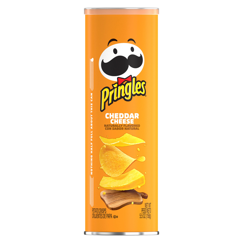 What comes after the “pop” of a Pringles Cheddar Cheese can? The crisp, hit-the-spot taste of potato seasoned with cheesy flavor. Ingeniously shaped Pringles Cheddar Cheese potato crisps are insanely light, crispy, and never greasy.
