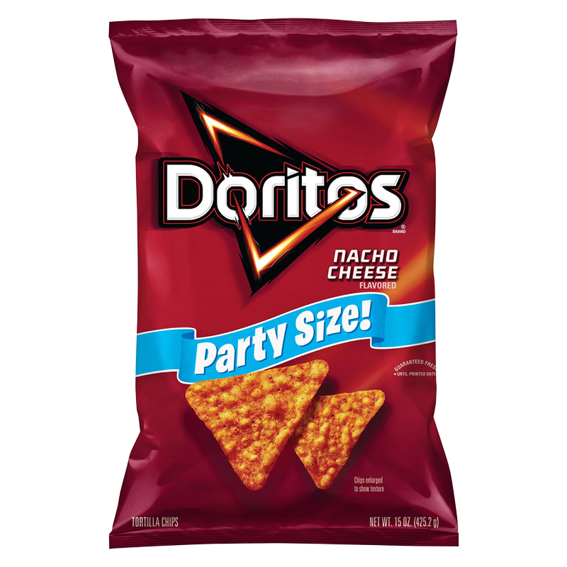 Doritos Nacho Cheese Flavored Tortilla Chips deliver a perfectly delicious nacho cheese flavor. This party size bag is perfect for sharing with friends, family or for yourself–we don't judge here! Get a perfect crunch with every bite, dip it in your favorite salsa or cheese, and enjoy!