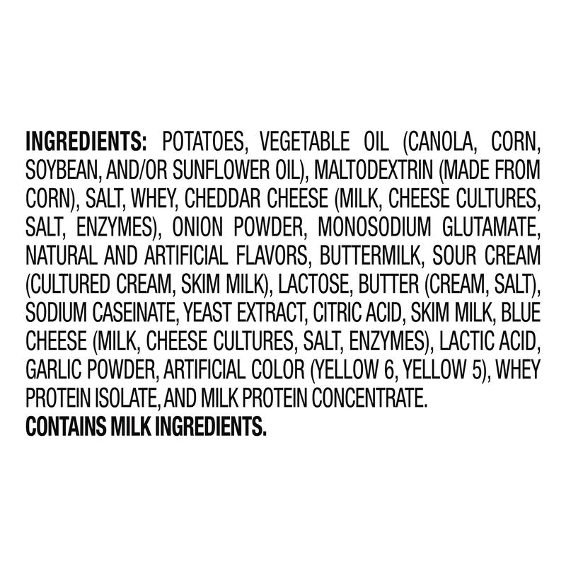 Ruffles Cheddar & Sour Cream Potato Chips combine the savory flavor of cheddar and the tang of sour cream in every bite.
