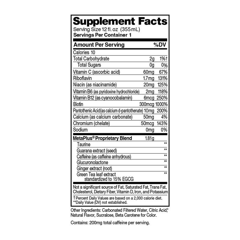 CELSIUS is functional, Essential Energy, a better-for-you, premium alternative to traditional energy drinks. As a global, lifestyle fitness drink, CELSIUS was created to help people LIVE FIT, exceed their goals and elevate their everyday lives. Made with proven, premium ingredients, 7 Essential Vitamins and zero sugar, no artificial colors, no aspartame, no high fructose corn syrup and non-GMO. CELSIUS is vegan, gluten-free and Kosher. Our proprietary MetaPlus blend contains green tea extract with EGCG. It also includes guarana seed extract, ginger root for flavor and digestion, vitamin C to help support your immune system, vitamin B for energy production, and chromium to help control hunger, making it an ideal pre-workout drink. Stay active and dazzle your tastebuds with the juicy and citrusy sweet blend of refreshing oranges. Our take on a classic, but without all the sugar! Made with clinically proven ingredients, this carbonated flavor of CELSIUS has the perfect balance of flavor and energy that serves as an awesome pick-me-up for active lifestyles. Make CELSIUS your go-to choice for Essential Energy!