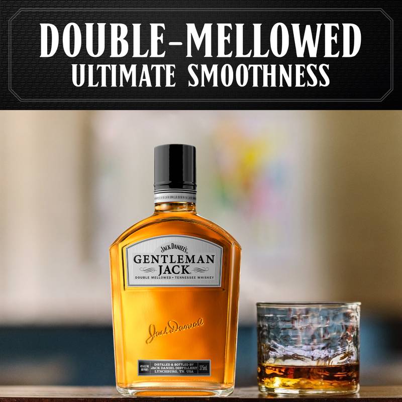 Inspired by the original gentleman distiller and founder, Jack Daniel's Gentleman Jack Tennessee Whiskey undergoes a second charcoal mellowing to achieve exceptional smoothness. Crafted by combining traditional methods with a unique process of its own, each batch of Jack Daniel's Tennessee whiskey begins with a well-considered recipe of corn, barley, rye, malt, and iron-free limestone spring water that lives within the depths of a two-mile-deep cave. This single-distilled, twice charcoal-mellowed alcohol is placed into handmade, charred white oak whiskey barrels for maturation. The resulting whiskey delivers a balanced oak flavor with notes of caramel and vanilla. Ideal for tasting, sipping and mixing, Gentleman Jack Tennessee Whiskey is perfect for celebrating life’s extraordinary occasions, plus all the moments along the way. Try Gentleman Jack in cocktails and alcohol drinks, like Gentleman's Sour, or simply enjoy it neat in your favorite whiskey glass. An approachable whiskey that's perfect for a variety of tastes, Gentleman Jack has a clean, soft nose and is flavor-forward in the mouth with a warm, short finish. Please Drink Responsibly.