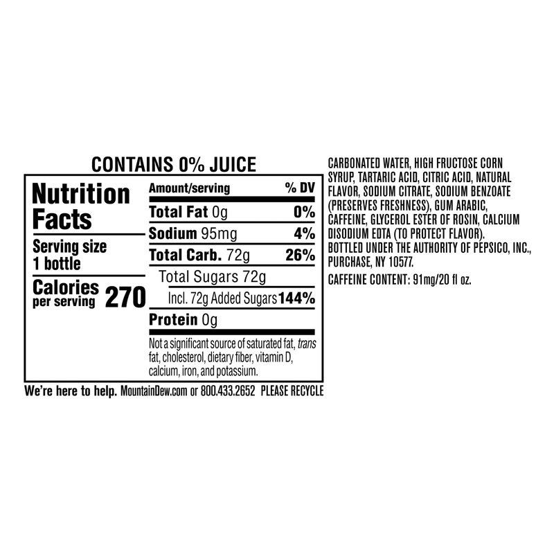 Mountain Dew is a favorite of teens and young adults. Extra boost of caffeine in citrus flavored drink. "Do the Dew"