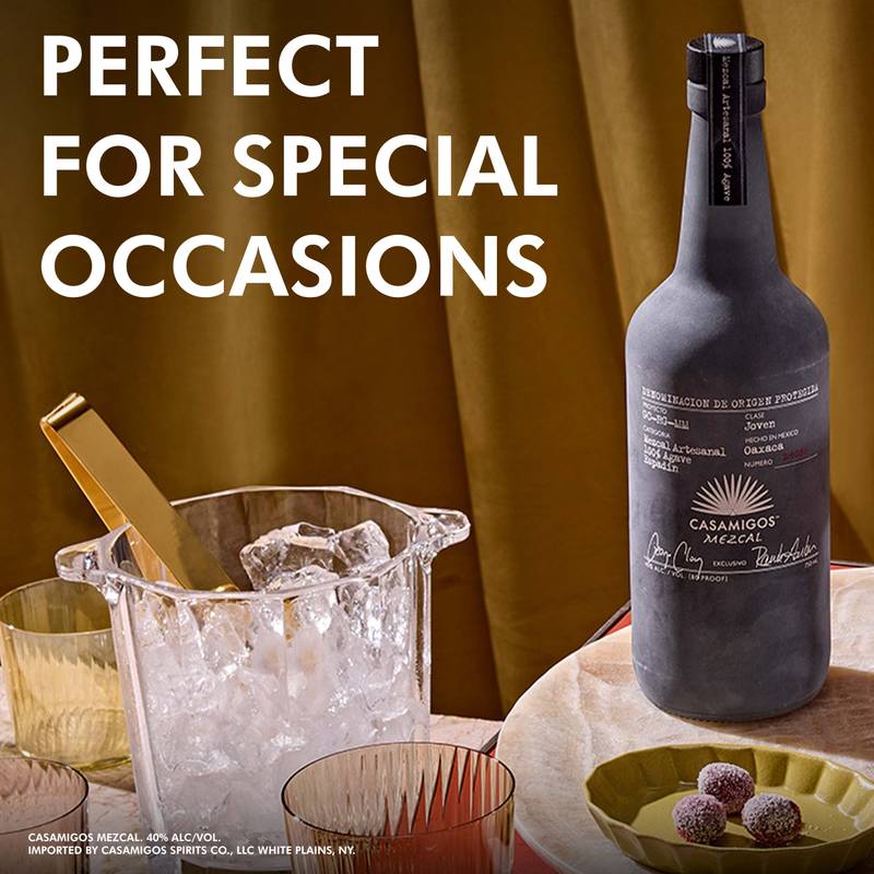 Discover Casamigos Mezcal, crafted from 100% Espadin agave in Oaxaca, Mexico. Distilled by a 4th generation family of Mezcaleros, this artisanal mezcal embodies a deep commitment to traditional methods and superior quality. Each step in making Casamigos Mezcal, from harvesting to distillation, reflects a time-honored approach. Agave pinas are split and slow-cooked in earthen pits lined with volcanic rocks, imparting the signature smoky flavor. After cooling, the agave is crushed using a traditional Tahona wheel and ferments for 6-8 days before being double distilled in copper pot stills. Crystal clear, Casamigos Mezcal boasts a fragrant aroma of herbal and fruity notes with subtle smoke. The palate is a balanced mix of tamarind, pomegranate, mint, and black pepper, finished with a smooth, smoky touch. Perfect for sipping neat or enhancing refined cocktails, Casamigos Mezcal delivers a smooth, distinctive experience, ideal for any occasion calling for artisanal refinement. Includes one 80 proof 750 mL bottle of Casamigos Mezcal Joven. Please drink responsibly.