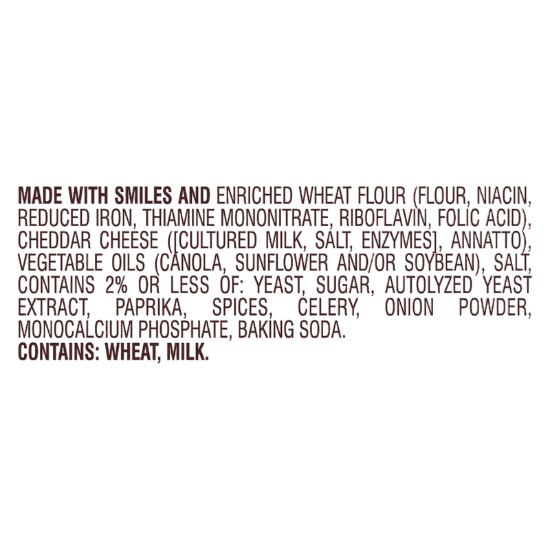 Serve up a snack the whole family will enjoy with Pepperidge Farm Goldfish Cheddar Cheese Crackers, the fun, fish-shaped snack crackers with a smile. These baked cheese snacks are made with ingredients you can feel good about, including 100% real Cheddar cheese and no artificial flavors or preservatives. The fun, bite-sized shape of Goldfish crackers make them the perfect at-home or on-the-go snacks for kids and adults. Crunchy and cheesy with an irresistible flavor, they’re a munchable must-have for school lunches, study sessions, road trips, movie nights and more. Make meals more exciting by serving Goldfish with a sandwich and fruit as part of a balanced lunch, or try them as soup crackers or salad croutons for dinner. You can even crumble them up and use them to bread chicken breasts for a cheesy twist on a classic. Each satisfying serving of 55 Goldfish Cheddar Crackers contains 140 calories and 5 grams of fat. This 6.6-ounce bag contains roughly 6 servings and is the ideal size for snacking alone or sharing. If you’re looking for even more flavor, try Goldfish Flavor Blasted snack crackers. Go for the handful with Goldfish.