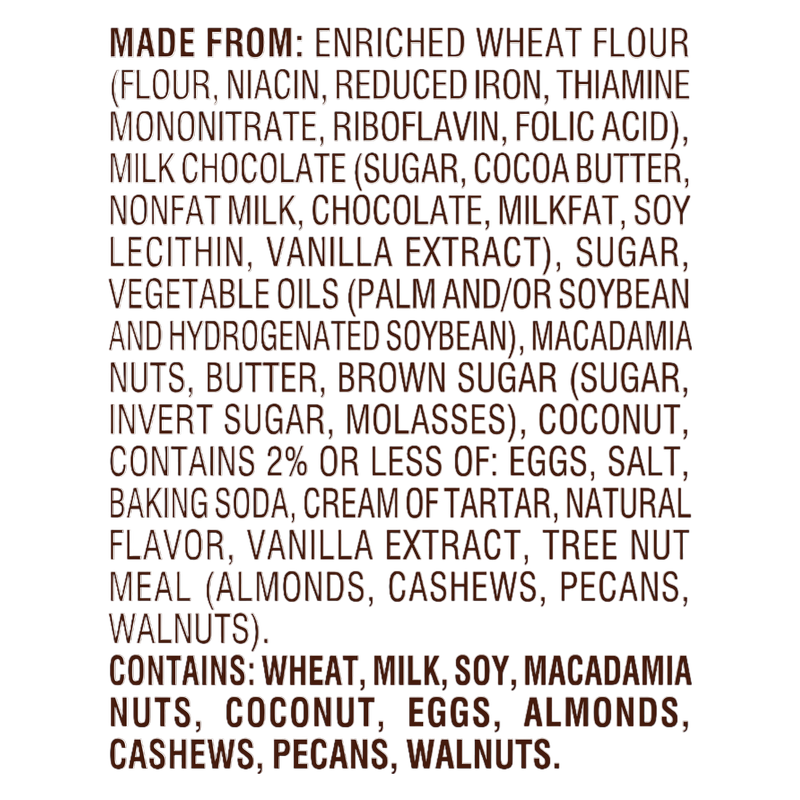Enjoy the homemade taste of Pepperidge Farm Sausalito Crispy Milk Chocolate Macadamia Nut Cookies. Made with an abundance of rich milk chocolate chunks and crunchy macadamia nuts, these sweet and crispy cookies have a delicious melt-in-your mouth flavor. Every batch is baked with care and quality ingredients, including real eggs and real vanilla extract. Each 7.2-ounce bag contains 8 chocolate chip cookies and is perfect for sharing or stashing in your pantry to satisfy your cravings for sweet snacks. Enjoy Pepperidge Farm Sausalito Cookies on their own, dunk them in a cold glass of milk, or pair them with a hot cup of coffee. Looking for a quick and easy dessert idea for your next party? Our chocolate chunk cookies are great for serving on cookie platters and can be used to make other sweet treats such as ice cream sandwiches and sundaes. In addition to Sausalito Milk Chocolate Macadamia Nut Cookies, our line of chocolate chunk cookies also includes Tahoe White Chocolate Macadamia Nut Cookies, Chesapeake Dark Chocolate Pecan Cookies, and more. Pepperidge Farm cookies are crafted with care and quality ingredients by creative bakers who believe baking is more than a job – it’s a passion.
