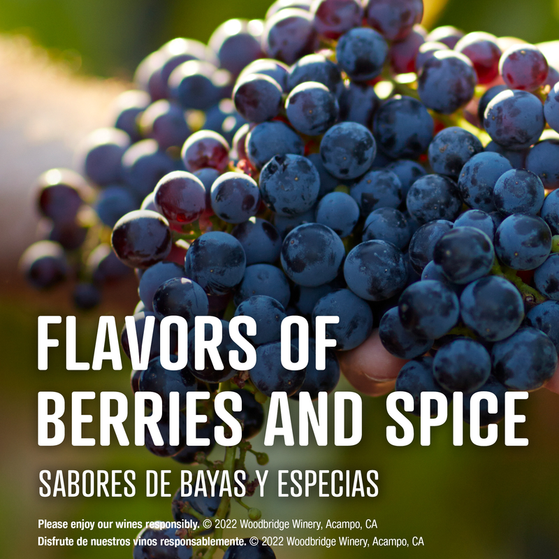 Woodbridge Red Blend Red Wine bestows a deliciously rich, full-bodied blend of warm, toasty aromas and flavors, including jammy blackberry, vanilla, and baking spices. This California wine melds some of the finest qualities of petite sirah, zinfandel, and syrah with additional complementary red wines, culminating in a delicious red wine blend that enhances its blackberry and vanilla flavors. Crafted with grapes sourced from California, this red table wine is fermented in temperature-controlled stainless steel tanks to retain fruitiness before being aged in French and American oak barrels. Pair this hearty and well-balanced Woodbridge Wine by Robert Mondavi with savory burgers, rotisserie chicken, and potato skins, or enjoy a glass of wine on its own, savoring its long, flavorful finish. To fully realize this California red wine's complexity, store this 1.5 liter bottle of wine at room temperature, but chill it in the refrigerator for 30 to 60 minutes before serving cool, at approximately 60 degrees. Winner of multiple Wine Enthusiast BEST BUY awards since 2011, Woodbridge is Wine Your Way. Please enjoy our wines responsibly. © 2025 Woodbridge Winery, Acampo, CA