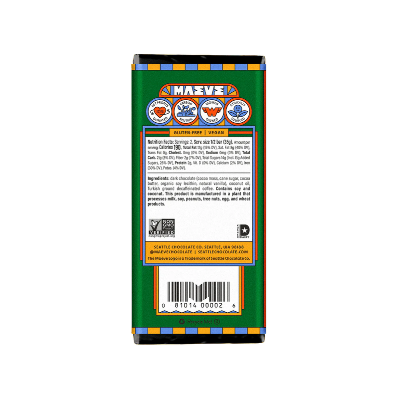 MAEVE Pike Place Espresso Dark Chocolate Truffle Bar, 2.5 oz
