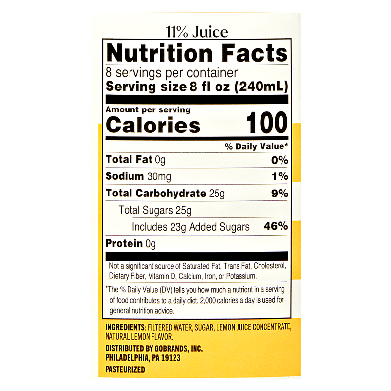 - Half of a gallon (64 fl oz) bottle contains 8 servings of refreshing lemonade