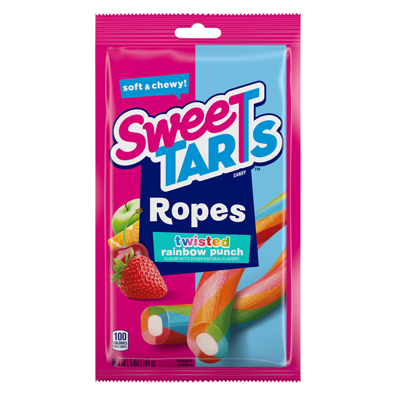 Twisted Rainbow Soft and Chewy Ropes® takes the classic sweet and tart flavor fusion a step further, creating bendable fun that’s fruity licorice and SweeTARTS all in one. Each bite of SweeTARTS Twisted Rainbow contains a delicious fruit punch flavor mix with a matching delicately tart filling.