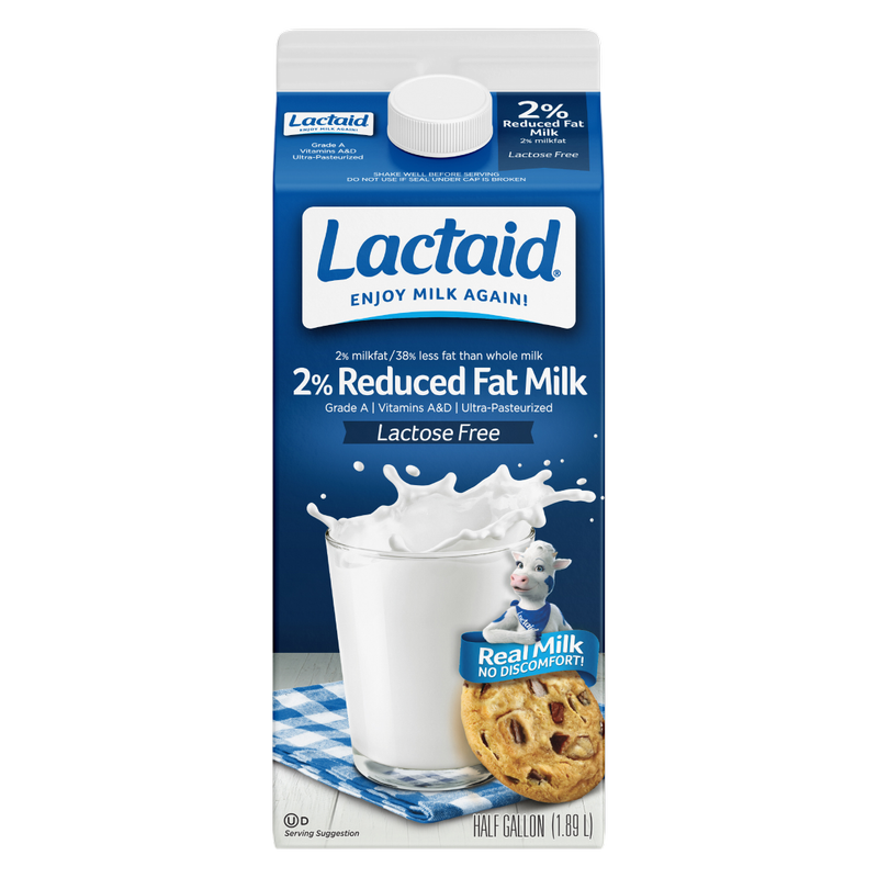 Lactaid lactose free 2% milk is packed with protein, vitamins, and 20% more calcium than you will find in regular milk, and it's 100% real milk, just without the lactose, so you can enjoy all the benefits of calcium-enriched milk and feel confident drinking this easy-to-digest milk.