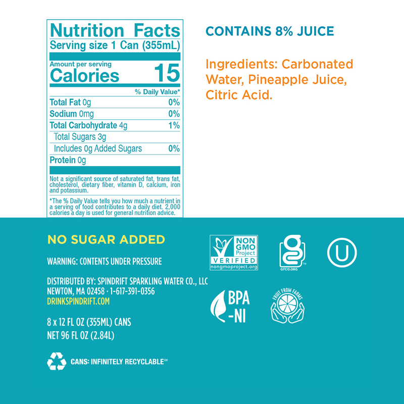 Take a sip, close your eyes, and channel those tropical vibes. Spindrift Pineapple sparkling water is paradise in a can. Made with ripe, juicy pineapples, Spindrift Pineapple is the first sparkling water made with real squeezed pineapple. It’s deliciously refreshing, like a tropical vacation for your taste buds.