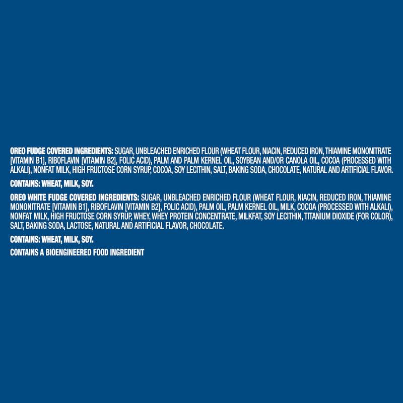 Spread joy this Christmas season with OREO Fudge and White Fudge Covered Chocolate Sandwich Cookies. A festive twist on a classic, these holiday cookies are dipped in rich chocolatey fudge and white fudge, forming a delicious coating that will bring everyone holiday cheer. OREO Christmas cookies in a decorative holiday gift tin make great holiday treats, whether you need stocking stuffers, holiday party favors, or convenient, ready-to-give gifts for friends, family, coworkers and neighbors. OREO cookies are the timeless chocolate sandwich cookies that summon smiles from the whole family, making them a must-have item on your list of holiday party supplies and stocking stuffer ideas. These sandwich cookies are packaged in a reusable holiday cookie tin that will make a festive addition to your holiday decor for years to come. Each tin contains 24 cookies.