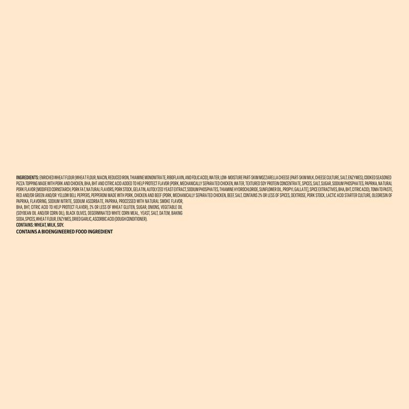 DIGIORNO Supreme Frozen Pizza on a Rising Crust is created to bake up crispy on the outside and soft and tender on the inside. The DIGIORNO frozen pizza is topped with pepperoni, sausage, green and red peppers, onions, black olives, and mozzarella cheese, delivering an easy dinner that's also delicious. The tasty pizza crust offers a soft and tender inside surrounded by a crispy outside. This cook and serve frozen DIGIORNO rising crust pizza is made with 100% real cheese and DIGIORNO signature tomato sauce. Step up your frozen family dinner with a supreme pizza on busy weeknights, or enjoy a pizza party with family or friends, or cook for a quick lunch. Keep this supreme pizza frozen until you're ready to enjoy. It's not delivery. It's DIGIORNO.