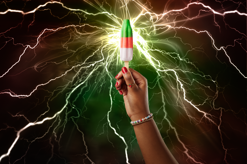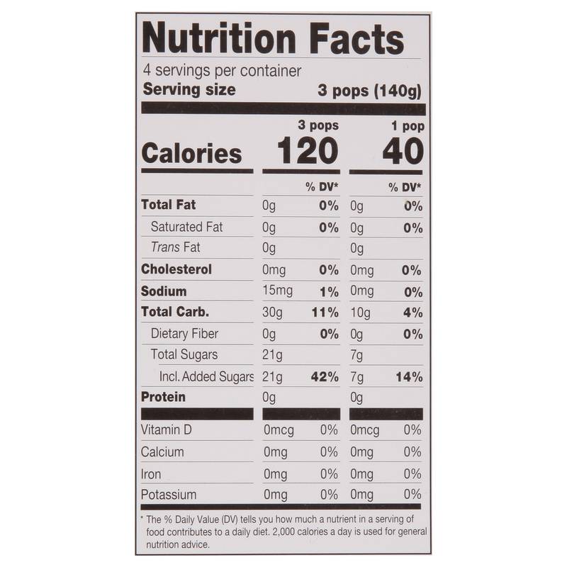 Pack a punch with a bold new twist on an iconic frozen treat with Bomb Pop Extremes Super Sour Strawberry Ice Pops. This extreme ice pop starts with a pucker-inducing punch of sour, which gradually cools off for a sweet and fruity strawberry finish you'll devour. These sweet snacks feature fun colors presented in the iconic Bomb Pop rocket shape, with the soft-bite texture you know and love. It's perfect as a refreshing sweet treat on a hot day or as a tasty reminder of summer fun. These extreme ice pops are also a great frozen dessert after school, on the go or for a sweet pick-me-up anytime. See who can handle the extreme tartness with 12 individual snacks per box; it's easy to share this exciting flavor journey with family and friends! Plus, with 40 calories per ice pop, you can indulge in this delightful treat and easy indulengce often! Kick it up a notch with Bomb Pop Extremes. Three extreme sensations. One stick. The best things are not one thing.