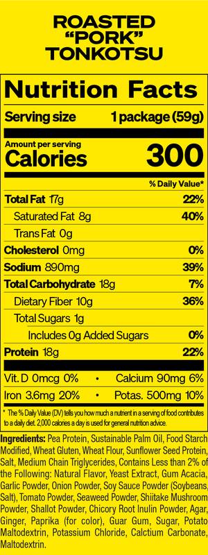 immi ramen has 18g Protein, 8g Net Carbs, and is 100% Plant Based. A smooth and velvety stock that captures the same smokey roasted flavors and is rich with hints of garlic, shallots, and sesame. Our tonkotsu is hearty, comforting and deeply satisfying.