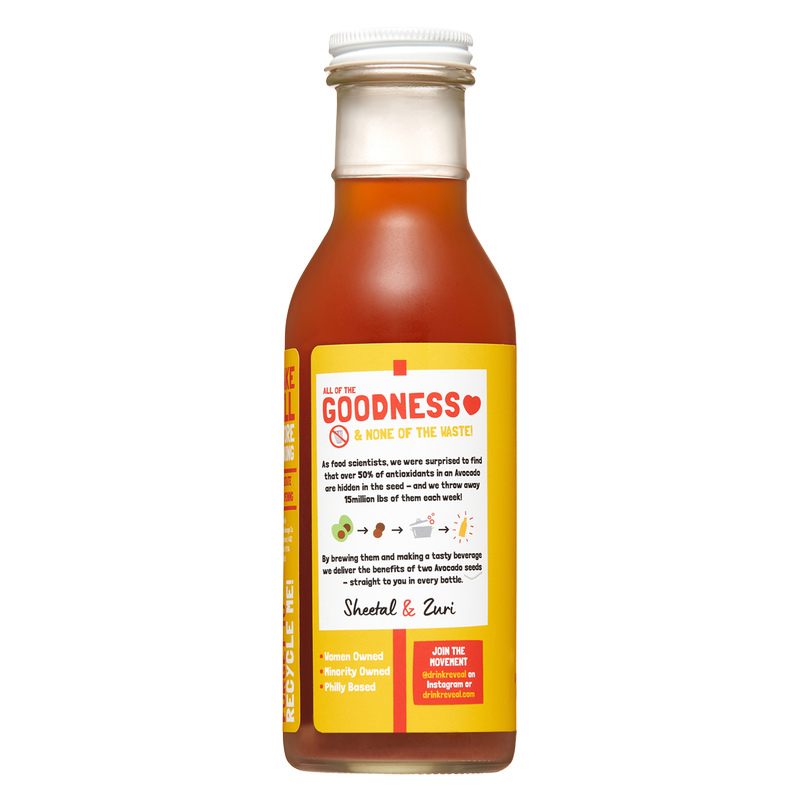 Reveal is a ready-to-drink beverage made from upcycled avocado seeds. Reveal is rich in antioxidants, contains zero added sugar, and provides your daily recommended amount of Apple Cider Vinegar. It’s a guilt-free beverage option that’s great for your health and reduces food waste.