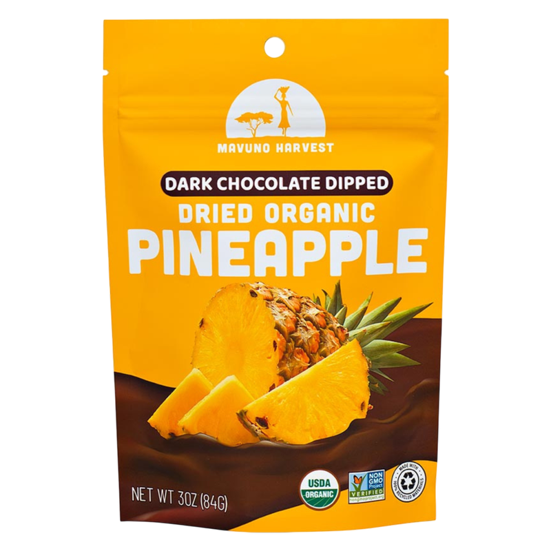 Discover the Ultimate Sweet and Tangy Fusion: Mavuno Harvest's Organic Dried Pineapple Coated in Luxurious Dark Chocolate!