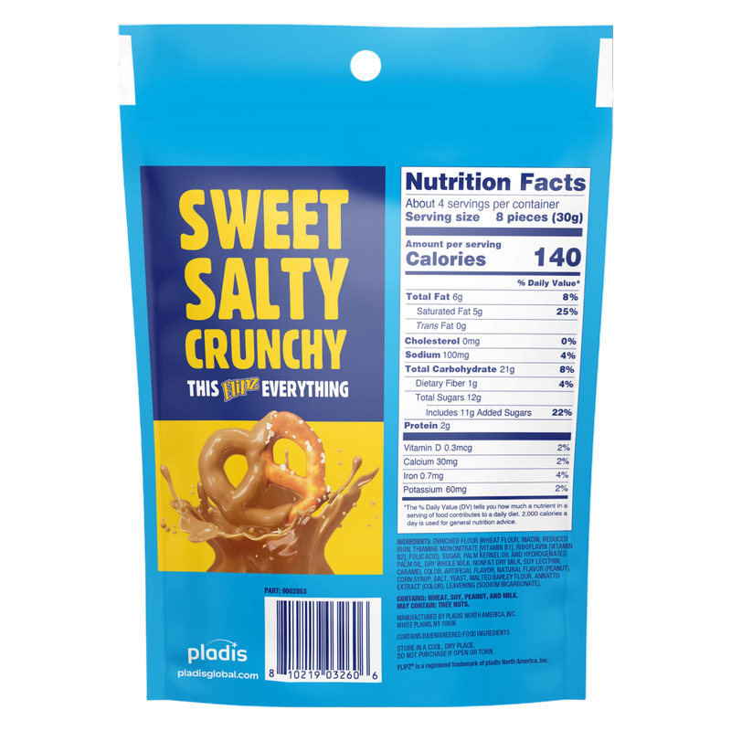 Crunchy, salty pretzels covered in creamy peanut butter fudge in a resealable pouch so you can snack now and save some for later (if there's even any left for later).
