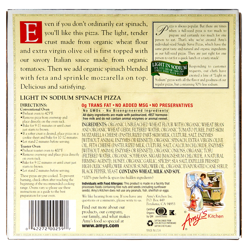 Amy's Spinach Medium Pizza 7.2oz