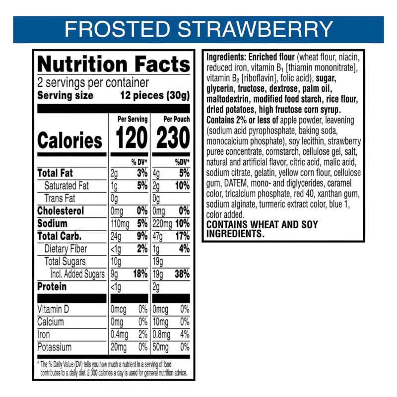 Pop-Tarts Frosted Strawberry Crunchy Poppers are your go-to when you’re looking for a crunchy, sweet snack. They’re small, light, and seriously pop-able. Crunchy on the outside and bursting with strawberry-flavored filling on the inside, each bite ends sweetly with delicious sprinkles and crackly icing. They’re fun to eat! Munch on a handful of these little pieces anytime, anywhere. When that 3 o’clock craving hits, grab a snack that’s ready to eat straight from the pouch; Whether the kids are looking for a crunchy strawberry afternoon snack or you need a pick-me-up at the office, discover a crazy good treat that’s no mess, no prep, and super satisfying. Pop-Tarts Crunchy Poppers are great for handing out at classroom parties, after the game, relaxing at home, or whenever your sweet tooth is calling. Just tear open a pouch and enjoy a crunchy strawberry snack that’s got the legendary flavor of Pop-Tarts wrapped in a small, delicious pastry shell. Reward yourself, you deserve it. Hello, sweet moment of happiness!