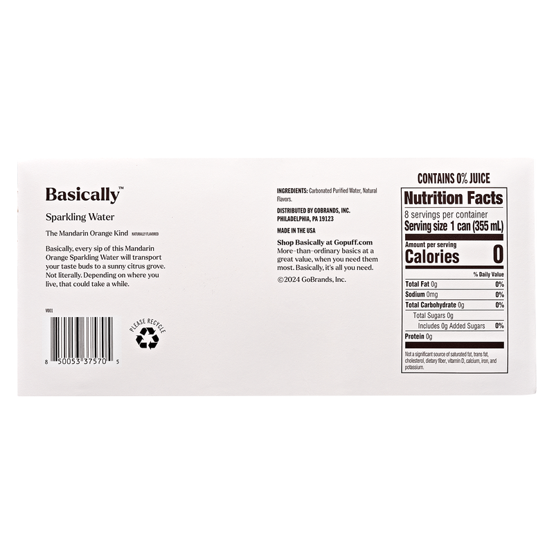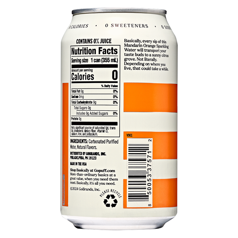Basically Mandarin Orange Sparkling Water 8pk 12oz Cans