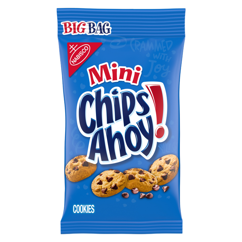 CHIPS AHOY! Mini Chocolate Chip Cookies are the CHIPS AHOY! cookies you know and love, bite-sized and baked to have the perfect amount of crunch. These mini cookies are made with lots of real chocolate chips. Enjoy the comforting taste of these mini chocolate chip cookies that are sure to become a household favorite treat. Make lunches at school or work more exciting by including CHIPS AHOY! mini, or grab these cookie snack packs to prep for a party or gathering. Regardless of the occasion these bite size cookies make a simple treat, dessert or ice cream topper. These CHIPS AHOY! mini cookies come in an individual Big Bag cookie bag, making them easy to grab and go and share with friends and family.